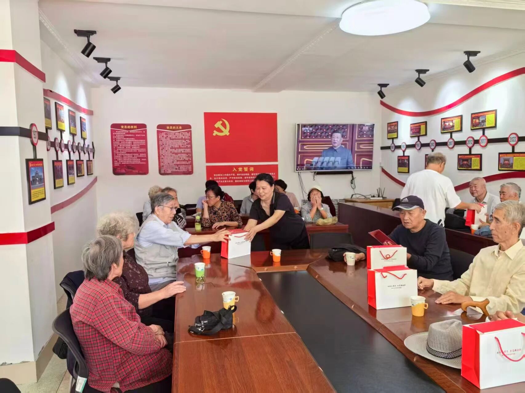 随后,支部书记逐一为参加会议老党员颁发政治生日贺卡和纪念品。